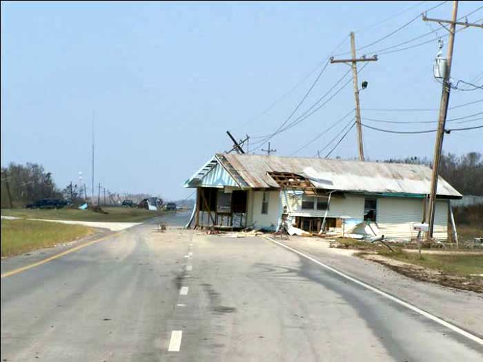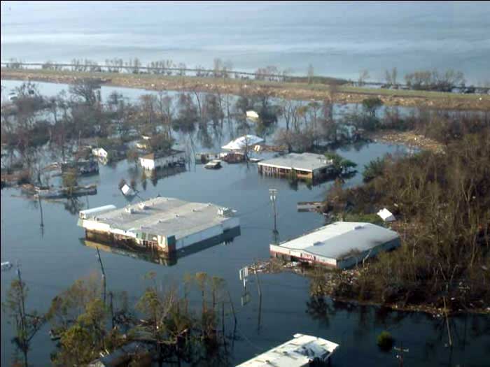 Aerial view of oil terminal damage along the Mississippi-Alabama coast. (US EPA photo 09/01/2005). Medium resolution (659 pixels, 49K) |