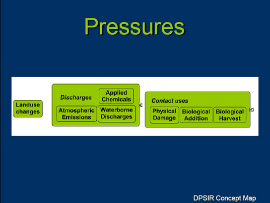 Pressures are human activities that create stress on the environment and include