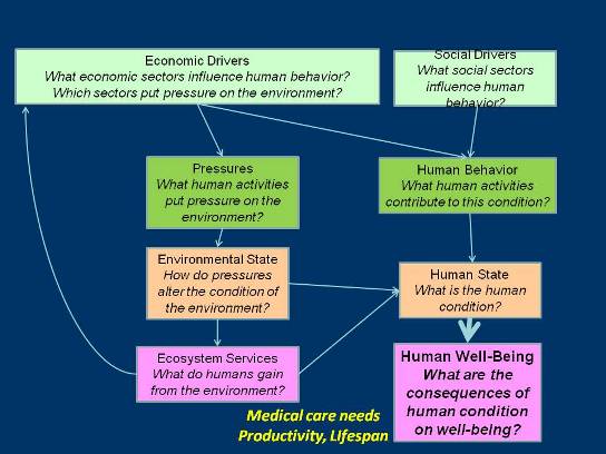 Next we ask, 'What are the consequences of human condition on human well-being?' In this case, asthma may lead to increased medical care needs, it may reduce ones lifespan, or reduce job productivity if the individual is frequently sick or caring for sick family members.