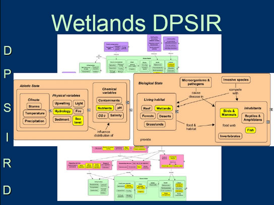 The Wetlands DPSIR was created by highlighting concepts from the generic DPSIR concept map which were applicable to wetlands.