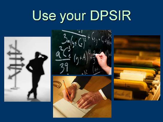 We emphasize that DPSIR is just one tool in the decision-making process, but is a useful one for encouraging a systems approach to decision-making, and encouraging scientists, stakeholders, and decision-makers to think beyond their topic of expertise.