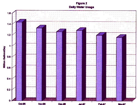 Figure 2 demonstrates the reduction in total facility potable water consumption for the period October 1996 to March 1997.