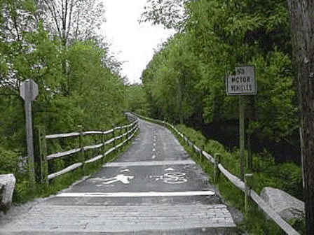 Rhode Island Blackstone River Bikeway along western edge of OU-1 follows the historic tow path for the Blackstone Canal. -